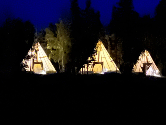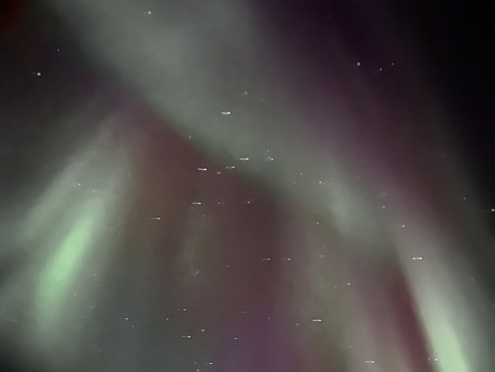 天候によりフライトがうまくいかず、3日間の鑑賞が2日間に減りましたが、2024年は太陽活動が活発なためか2日ともオーロラが確認できました。白っぽく見えますが、カメラで写すと美しい緑色になります。最初はオーロラがどれか判別できるまでに少し時間がかかるかもしれません。TPと呼ばれるテントで暖を取れますが、オーロラは気まぐれに登場して消えゆくので完全防寒で長い時間外で待機するのがベストです。ホテルの自身の部屋周辺のお客様たちが偶然口論で声が鳴り響いていて心配になりましたが、その後は問題なく過ごせました。