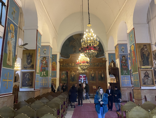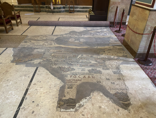 当日は休日で朝の交通渋滞も無く、マダバのギリシャ正教会の礼拝中に聖ジョージ教会に到着。礼拝後教会床のモザイクを見学しネポ山頂の教会とガイドさんが丁寧に説明してくれました。