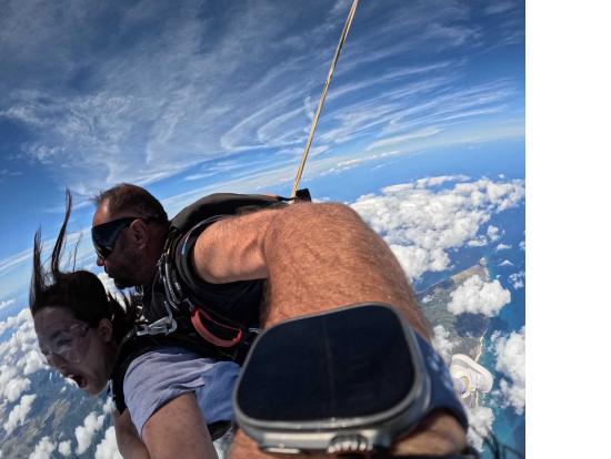 人生でやりたいことリストに入っていたスカイダイビング!ちょっと怖いかなって思ってて、下で待機してる時パラシュートの到着する速度が早くてビビってました!