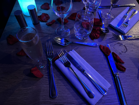 18時45分出発コースを予約しました。席は一番前で周りがよく見えてとても良かったです。さらにテーブルには真っ赤な花びらがまかれていておしゃれでした。お食事は確かにお肉が硬めでしたが、どれも美味しかったです。デザートが来てもコーヒーがなかなか来なかったので、声をかけお願いしました。デザートが来たらその時にすぐに声をかけた方がいいです。飲まずに降りているお客も多かったです。おしゃれなディナークルーズでした。