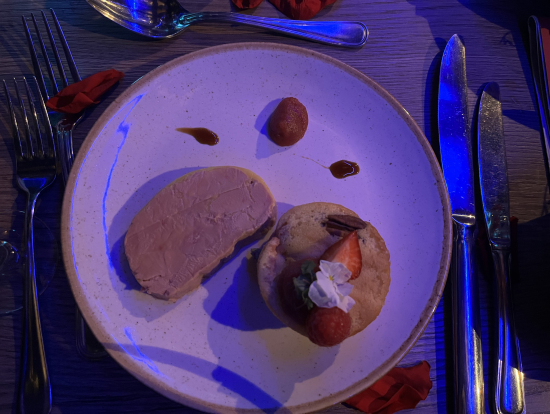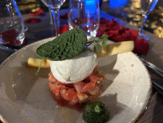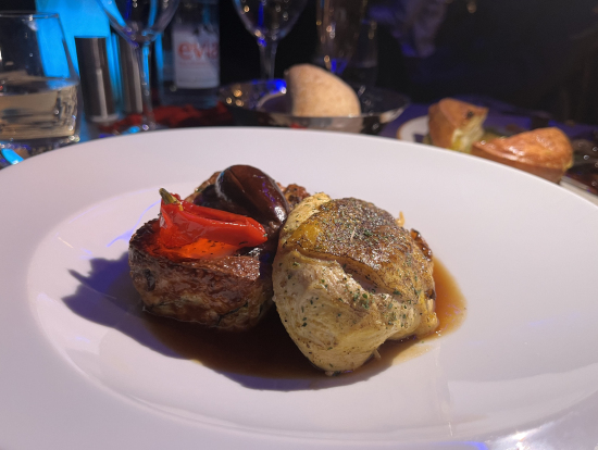 前菜、メイン、デザートをQRコード読み取ったメニューから選択。日本語はないのでアプリの翻訳機能で確認。飲み物は追加でオーダー(お水も)。お料理は美味しいです。乗船、ディナー含めるとかなりお手頃。