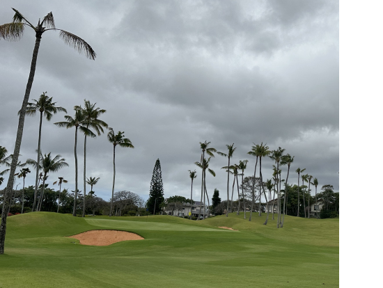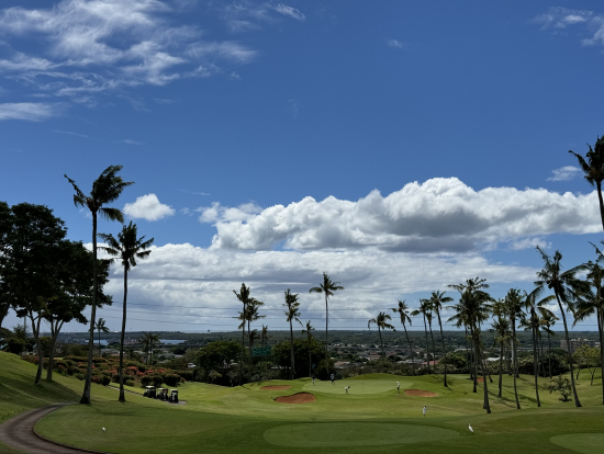 ゴルフ場は広くて綺麗で、カートも乗り入れ可。たくさんのヤシの木の下でプレイすることも出来て「ハワイゴルフ」を存分に感じることが出来ました。