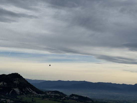 当日は、カタルーニャ広場のハードロックカフェ前に6:30に集合で、17人参加で車2台で出発した。途中でカフェに30分ほど立ち寄り、朝食(自己負担)とトイレタイムをとった。8:00過ぎにバルーンの場所に到着して、バルーンに熱風を送って準備して、8人と7人に分けて、8:30に2機でフライトを開始した。天気は曇りだったが、バルーンが雲を突き抜けると、太陽が輝いて最高だった。約1時間のフライトの後、農道に着地してバルーンを回収し、カヴァとスナックを楽しんだ。その後、行きと同じカフェでトイレタイムを取り、11:30にカタルーニャ広場に到着した。