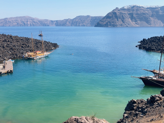 サントリーニ島 イアの夕日と島めぐり 1日クルーズツアー!活火山島+海中温泉+ティラシア島+サンセット鑑賞<4月~10月/英語/サントリーニ島発>★★★★★