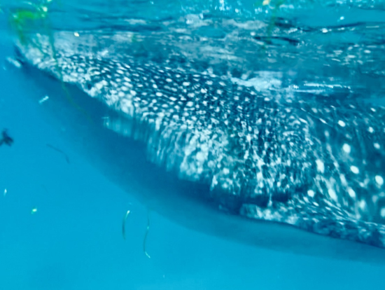 この日は波が激しかったらしく荒波に揉まれ、ボードから出ている持ち手に捕まるだけで必死でほぼ修行でした笑 ただジンベイザメはボート間を往復してるのでなんとか見れますが、自分での写真撮影は難しかったです。ガイドさんが私のスマホでバッチリ動画に収めてくれたので助かりました。ジンベイザメは2,3メートルくらいの距離に居てたと思います。鑑賞後は水着のままシャワーを浴びて移動。