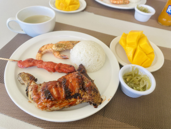 ジンベイザメから1時間ほど移動してキャニオリング準備スポットに着き、そこで昼食を食べました。鶏肉やエビのグリルとマンゴーがあり美味しかったです。