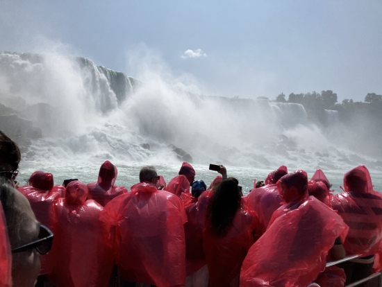 →ナイアガラシティクルーズ乗船(顔と膝から下が少しは濡れます。が、気候が良いのですぐ乾きます。濡れるのが気になる方はサンダルがお勧め)