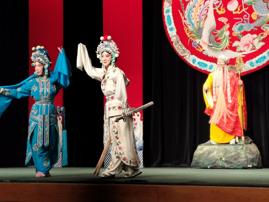 開演のご案内で皆様方が座席に戻り20時からいよいよ開幕。演目は、たまたま旧暦の5月5日端午節に因んだ「白蛇伝」。長いお話しですのでストーリーも楽しめる程度に上手くカットされ前半はたっぷりと独特な歌声と所作を堪能し、後半には息つく暇もないほど次々に繰り広げられるアクロバットと剣舞での演出。娘も凄い凄いとつい口に出してしまうほど。皆様方も拍手の嵐であっと言う間の1時間でした。