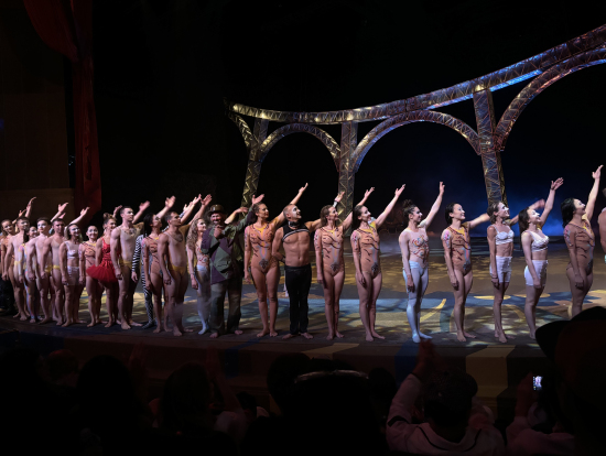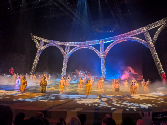 舞台が水中で進んでいくのは斬新で、ダンサーやアクロバットたちが水に飛び込んだり浮かんだりする様子が本当に幻想的でした。水と火の演出も見どころです。