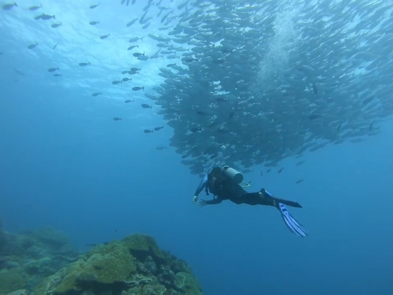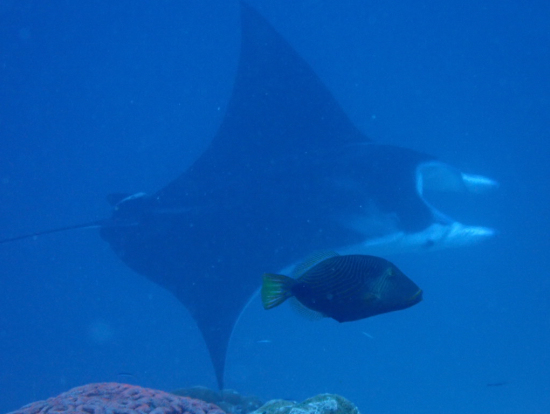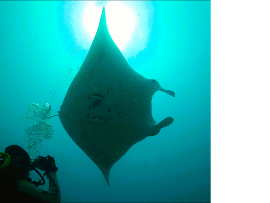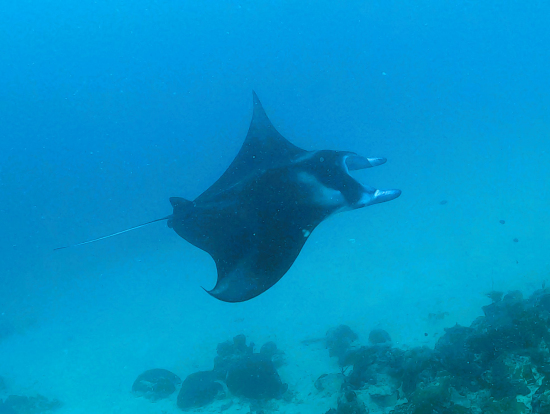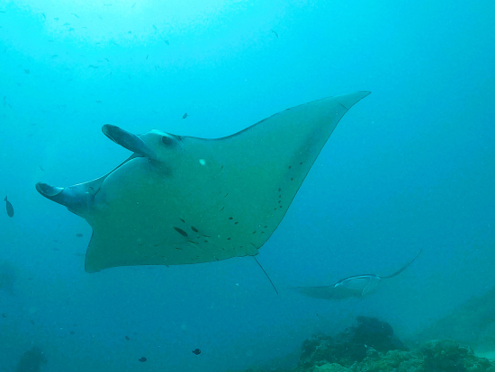 マンタシーズンに参加。ジャーマンチャネルではそれ程待つこと無くマンタが現れ、延々と真横や真上をゆっくりと通り過ぎて行くので大興奮!途中から透明度が悪くなったりもしましたが、近いし大きいしで迫力充分でした。2日間の弾丸日程の中でブルーコーナーにも2回連れて行ってもらえて、サメや群れをしっかり堪能出来ました。アフターダイブのアクティビティ含め急な変更にも柔軟に対応いただき、ぎゅっと凝縮して楽しませていただきありがとうございました!!