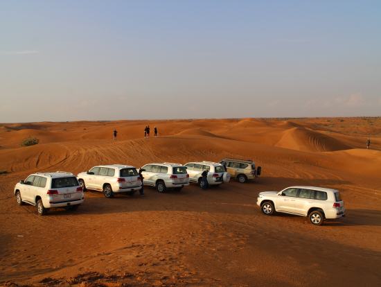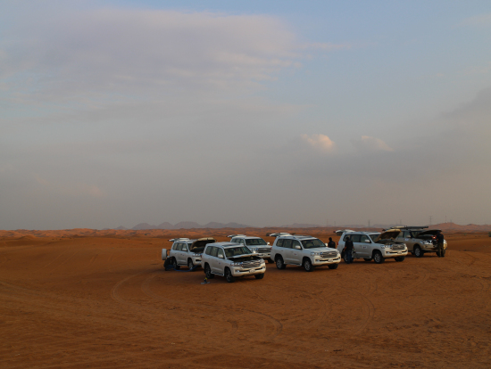 ドバイ市内から車で1時間ほど走ったところで砂漠の中に入って行き、車のタイヤの空気を抜きながら他のツアー参加者の車が揃うのを待ちました。