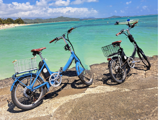 カイルア観光ツアー 電動自転車で全米No.1のラニカイビーチなどを巡る!ガイドが付かない自由なツアー ブーツ&キモズのパンケーキ事前予約可能<8時間/送迎付き>★★★★★