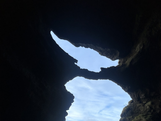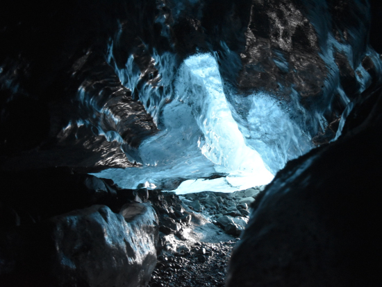 氷の洞窟は天候によっても入れる洞窟は日替わりのようですが、ツアー写真にあるほど大きい(長い)洞窟ではありませんでした。入り口〜突き当たりまで10〜15m程度でしょうか。それでも、突き当たりまでまで行き振り返ってみると綺麗な青の洞窟で、感動的でした。