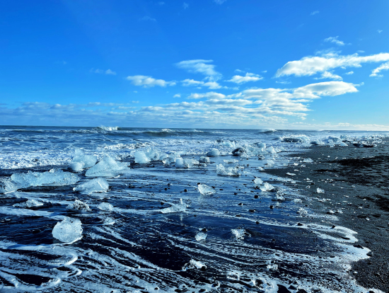 滝や途中の光景が美しかったですが、やはり最後の氷河湖が今までに見たことのない景色で良かったのと、その近くのダイヤモンドビーチに転がる氷河のかけらが美しく、夢中で写真を撮ってしまいました。