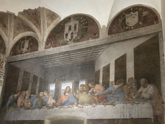 最後の晩餐は公式サイトだと予約できず、こちらにお願いしました。ミラノ中央駅から地下鉄は怖かったので、トラムに乗って教会まで行きました。途中、スフォルツェスコ城前で下車して少し歩いて向かいました。ミラノの街並みもゆっくり見れるので時間はかかりますが移動はトラムがオススメです。最後の晩餐は管理もしっかりされていて、歴史や修復の過程も学べて素晴らしかったです。町歩きも普通なら通りすぎてしまいそうな遺跡あとなども案内してくれて、最後まで飽きずにミラノを堪能できました。