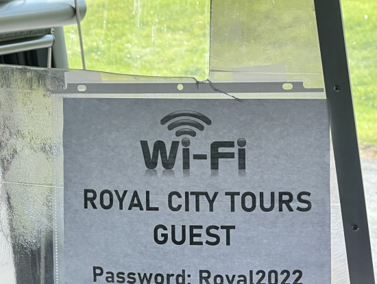 ナイアガラの滝にはお昼の3時半ごろ到着しました。バスの先頭の座席にWi-Fiのパスワードと、ナイアガラの滝に着いてからの夜の集合場所スポットが書いてある張り紙が貼ってあります。