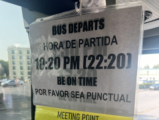 (コンフォートインホテルの近く)が待ち合わせ場所でした。ちなみに、バスは20分過ぎくらいに到着するので、早めに集合場所に戻ってもバスが居なくて少しパニックになりました。笑