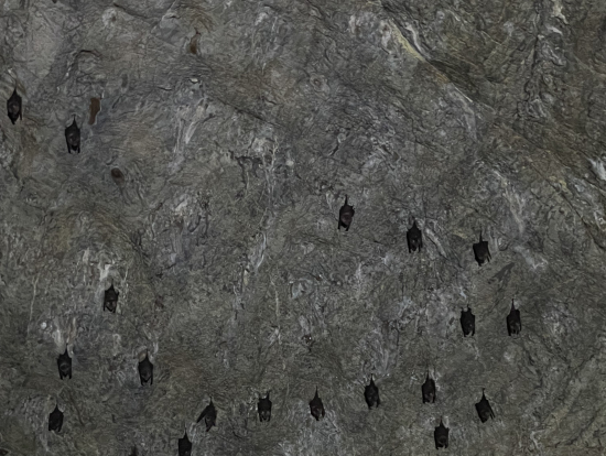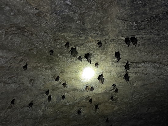 まずは徒歩で洞窟へ。暗闇の中、コウモリ見物となります。