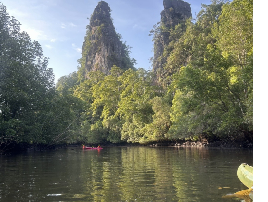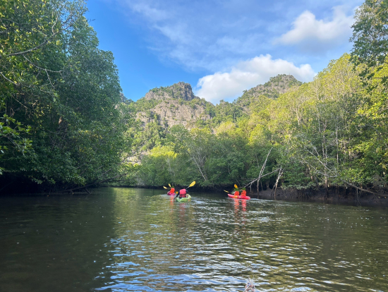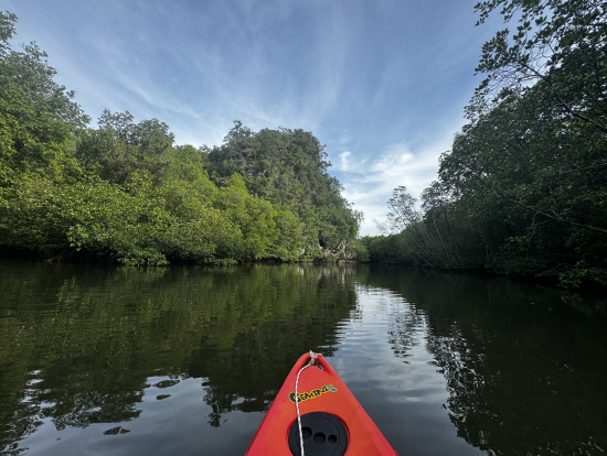 暑い日中を避けて、夕方からのカヤックツアーは涼しく、最適でした。ガイドのボイさんが丁寧に案内してくれて、カヤックが初心者でもとても楽しむことができました。上流から両側のマングローブを見ながら、約1.5キロの距離をゆったり下っていくコースでした。カヤック後の夕食(地元料理)も美味しくて完食しました。