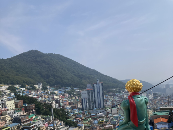 甘川文化村は釜山市内から電車とバスで行ったところにある郊外の街です。ここはカラフルな家々が山肌に連なる様子がSNSなどで注目され、「韓国のマチュピチュ」とも呼ばれ人気の観光スポットです。元々は朝鮮戦争時に北朝鮮から逃げてきた人が暮らしていた集落でしたが、2009年より街おこしで路上アートなどを置くようになったことで注目されるようになりました。見どころは色鮮やかな街全体の様子を見渡せるハヌルマルの屋上展望台です。そのほかにも絵本「星の王子さま」のオブジェや人のシルエットに甘川文化村の街の一部を描いた「人形のオブジェ」などたくさんのアートが街中にあります。