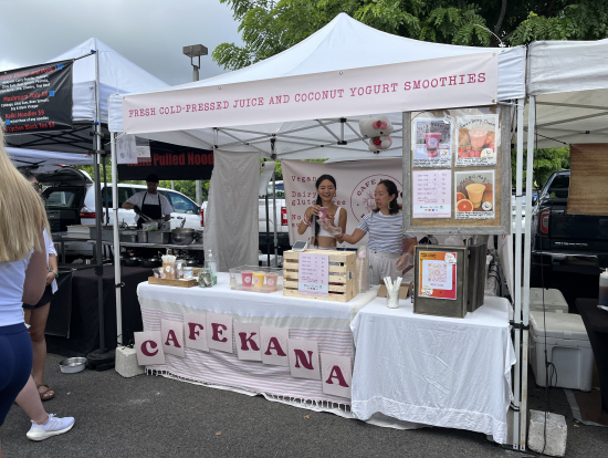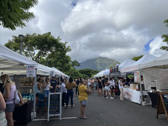 木曜の夕方17時頃から19時半頃まで開催されるマーケット。カイルアのショッピングエリアにあるカイルアタウンセンター「ロングスドラッグス」の裏にある駐車場で開催され、毎回ロコや観光客で賑っています。新鮮なフルーツ、オーガニック食材、その場で食べられる料理が並び、ローカルのマーケットならではの雰囲気が感じられます。
