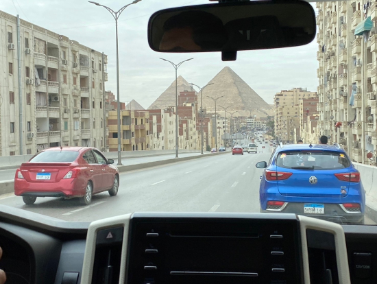 テレビ、写真では何度も見ていたピラミッドでしたが、生で見上げるピラミッドは迫力が違いました。向かう車中でビルの合間から、その巨体がヌッと現れた時には思わず爆笑。これが4,000年以上も前に造られたものとは想像できず、ひたすらぼーっと見惚れておりました。ガイドのカリファさんは日本の研究チーム(吉村先生や名大)をサポートされたご経験もあり、ロケーションや構造、歴史や埋蔵品について、とても分かり易く面白く説明して頂きました。東西南北どこも砂漠の景色は、山に囲まれた日本人にはあまりに新鮮で、これたま何時間でもぼーっと見ていられます(帽子と水はあった方が良いです)。