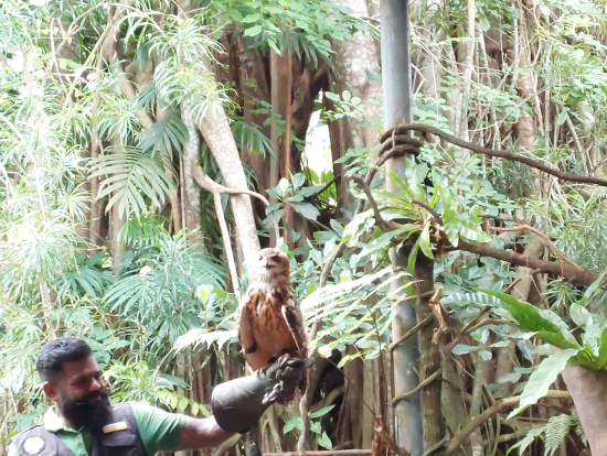 そしてガイドさんが写真撮影のタイミングで呼んでくださり、待つことなく、オランウータン、フクロウなどと写真撮影できました。