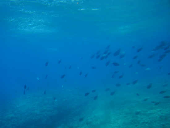 クルーズでは伊良部大橋の下をくぐるときはデッキにでて、水中鑑賞のときは地下の席に座り、魚もたくさん見えました。