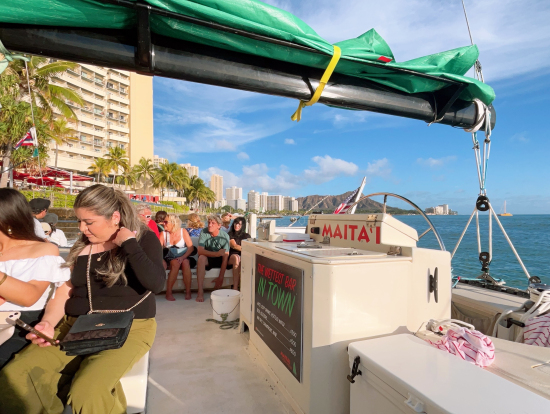 サンセットセーリング マイタイ・カタマラン号 ビールやシャンパン、ハワイアンカクテルなどオープンバーでの飲み放題付き!<シェラトン・ワイキキ発>★★★★☆