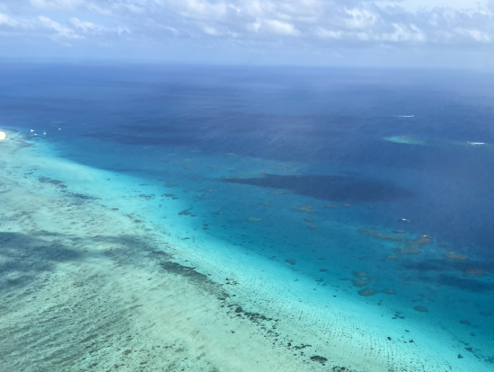 当日は快晴で、非常にグレートバリアリーフの全体を見ることができました。言葉では言い表せないくらいの広大な環礁をゆっくり満喫しました。見どころのスポットは、セスナのどちら側に座っていても見られるように、時々旋回してくれました。一応酔い止めを飲んで行きましたが、思ったよりも揺れなかったです。
