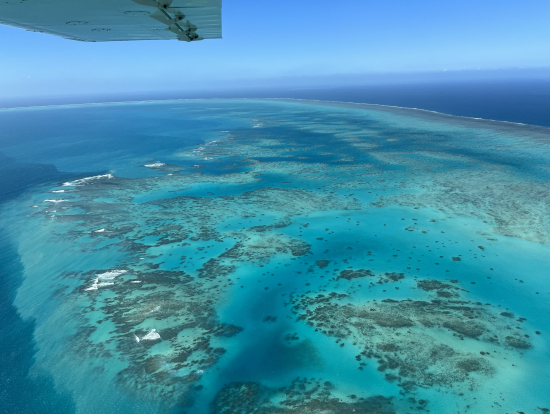 シュノーケリングやダイビングではグレートバリアリーフの一部しか見られないと思い、セスナ遊覧飛行を申し込みました。