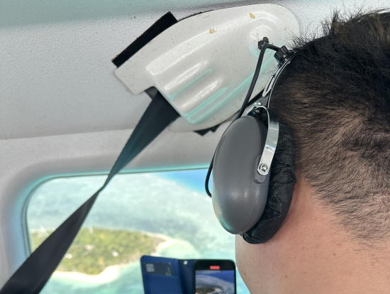 万が一のために使用する器具を全員腰に巻いて身に付けることになっています。また、実際のセスナの乗車位置もパイロットの指示に従って座ります。体重や緊急時に対応できる人などで割り当てているように見受けられました。