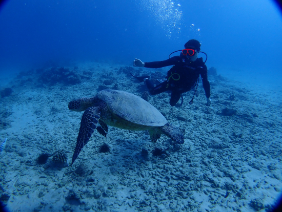 Cカード取得後初のダイビングでした。スタッフが親切で最初から不安なく楽しめました。 シータイガーで沈船の内部にまで入れて、初めての経験でしたので感動しました。 タートルキャニオンでは多くの海亀(ハワイの神様)に出会いました。