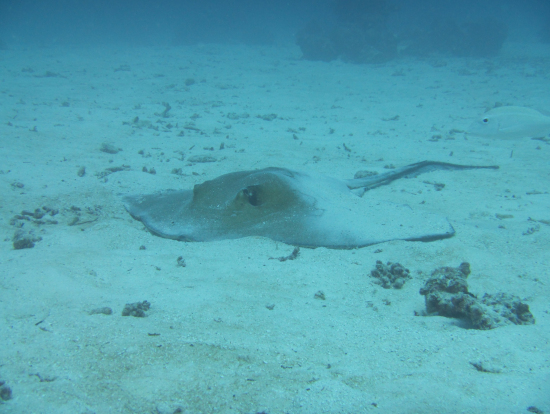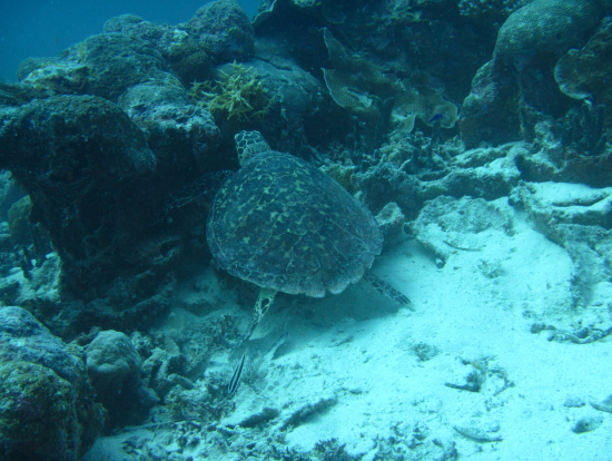 グアムには20回位行ってますが 去年の年末に家族でダイビング初級ライセンスを取得したので13歳の息子と3人で 初のFDでした。ボートダイブの2本で 時期的に風も強く私だけ不安が有りましたが その旨を伝えると インストラクターの方が ゆっくり行くので大丈夫ですよ!と 本当に様子を気にしてくれながら ゆっくりと親切にアドバイスをしてくれながら潜れました。1本目は ブルーホールに潜る方と一緒だったので ブルーホールの入口を見ることが出来ました!2本目は 海ガメ希望してたので インストラクターの方が 頑張って探しますね!見れると良いのですが・・・と言ってましたが なんと4匹も海ガメちゃんに遭うことが出来ました。
