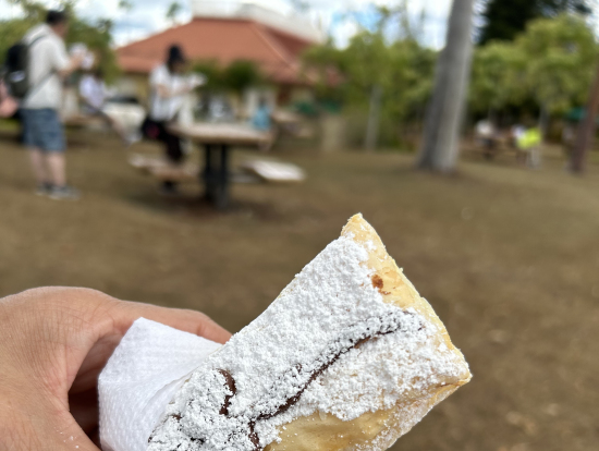 最後はレナーズのマラサダの揚げたてを店の前でパクつき、残りはジョバンニのガーリックシュリンプと共にホテルの部屋で頂きました。