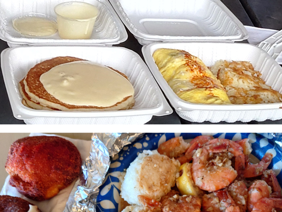 ガイドのレオさんが並んでくれたパンケーキ、ガーリックシュリンプ、全部美味しかった!