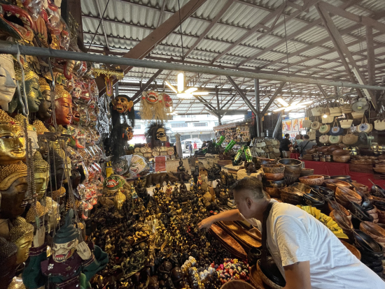 水上マーケット、日本では味わえない手漕ぎボートによってお店を巡る感じが良かったです。ただ、ガイドさんからも話には合ったものの、ここでは値段交渉が必須ということが結構大変でした。立ち寄るお店お店、買ってほしいと片言の英語で商売をしてきます。値段の相場がわからないため、いくらまで値下げしたほうが良いのかがわからず結構苦戦しました。とはいっても、交渉することも体験の一つかと思い、象の木の器を購入しました。なんでも手漕ぎボートと同じ木で作った器なんだとか、、、最初は800バーツといわれたので交渉を重ねて、着地点は400バーツ。テーブルに飾ってます♪