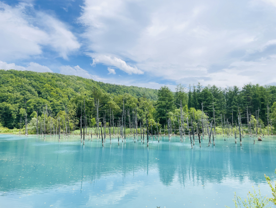 青い池は幻想的。シーンと静まりかえった環境でも見てみたい。