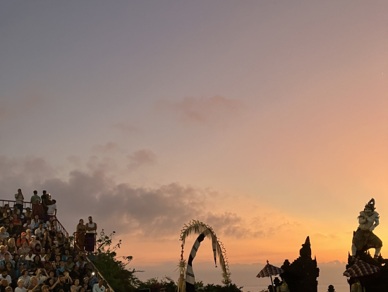 そこから、最後のウルワツ寺院へ向かうのですが、渋滞がひどくかつ、ウルワツ寺院も大人気で環境客がとても多いです。これは、ツアーでないとなかなか参加するのは大変だと思いました。ケチャックダンスは夕日を背に感動的だし、意外とディズニーのような観客いじりもあります(笑)