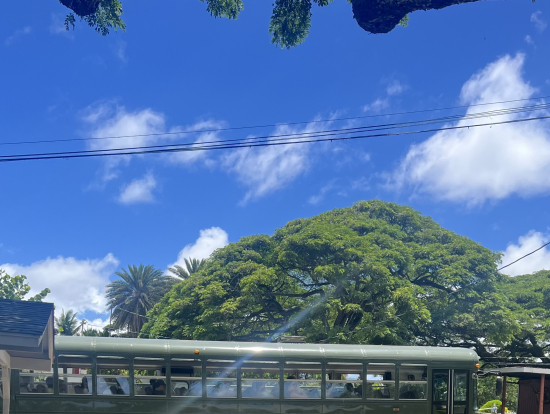 送迎バスとクアロアのチケットをセットでVeltraが手配したことで、無駄な長い待ち時間がなく、カフェテリアでもおいしい昼食をとる時間もとれて、楽しい時間を過ごすことができた。単に映画のロケ地を巡る程度と想定していたが、実際は、ワイキキ側とは全く異なるオアフ島の大自然を堪能しながら、アメリカの壮大な映画つくりの文化に触れることができた。ツアーのバスの運転手兼観光ガイドさんは、ゆっくり、はっきり話すので、よく理解できた。ツアーはあっという間の1時間半だった。