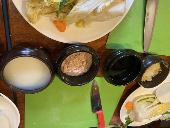 キムチチヂミとオミジャ茶も出して下さり、色々な会話をしながら、とても楽しい時間でした。白菜キムチ以外にも学べるらしいので、また、次回挑戦したいです。