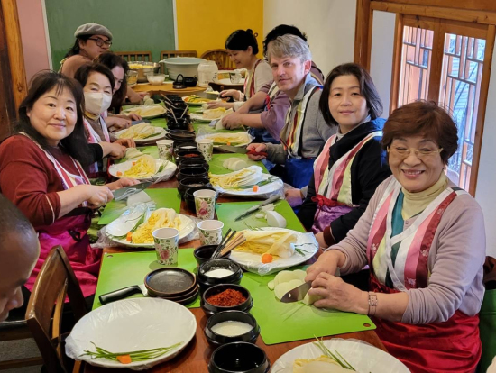 先生の説明は、英語、日本語、韓国語、中国語をミックスしながらですが、充分分かりますし、面白いですテンポ良く始まりキムチ作りが体験できて良かったです。お茶やチヂミも出してくださり、韓屋で受講できて映えました!オススメです❤️また行きたいです。