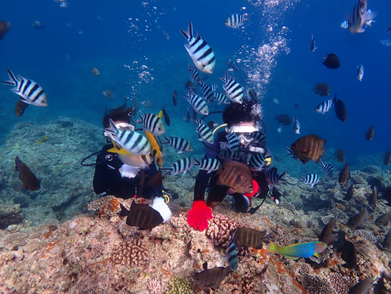 最初はインストラクターさんの手を掴んでダイビングしていきますが、途中からは自分だけで進んで行ったり多少自由度のあるダイビングを体験できました!