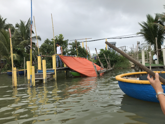 宿泊していたホテルまで迎えにきてもらい、ホイアンの朝市で野菜や果物などを紹介してくれました!そのあとボートに30分ほど乗り、川の上でココナッツボートに乗り換えました。1人10万ドン払って、クルクル回してもらいました。