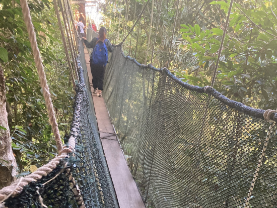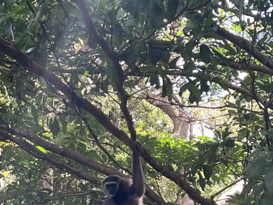 ハイライトはキャノピーウォークでギボンに遭遇できたことです。一頭だけですが我々人間に興味津々なのか、吊り橋の上に現れてしばらくその場でとどまってこちらの様子をうかがっていました。後続グループに通せんぼのように吊り橋の上にぶら下がっていたのには笑いました。最初は少し怖かったですが、人間との交流を楽しんでいる個体のように見えました。動物園とは違うイキイキとした姿に感動しました。