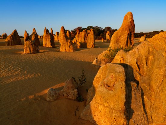 ピナクルズはオーストラリア西部・パースから車で3時間ほどのところにある砂漠です。ここは砂漠に現れた無数の柱状の奇岩群が有名で、不思議な光景に圧倒されます。この奇石は石灰岩が長年雨風にさらされることで形成されたものです。奇岩群が形成された経緯はピナクルズ砂漠のあるナンバン国立公園内「ピナクルズ・ディスカバリー・センター」でも学ぶことができます。青空の下、黄色い砂漠に広がる奇岩群の光景も素晴らしいですが、夕日に照らされる神秘的な景色や満点の星空もおすすめです。