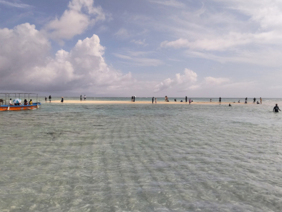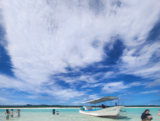 お盆に少しかぶり与論滞在中に予約をして、利用させていただきました。残念ながら台風の前後もあり砂浜は削られていたため、砂浜はお目見えできませんでしたが、海の真ん中で立つ不思議な体験をしました。船長さんのオススメでビーチサンダルは船に置いて、素足でおりましたが、とても心地よい感触と、エメラルドグリーンの海に360度囲まれ、膝くらいまでしかない波がまた不思議で、手ですくいあげた砂から星砂を歳の数だけ拾うというドラマティックな体験をしました。