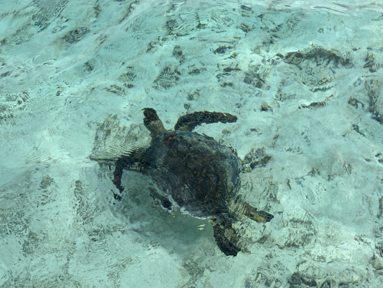 3月頭でしたが、足跡一つない綺麗な浜に上陸する事が出来ました!1日曇りの日でしたが、上陸した数分間だけ太陽が出て、良い写真も沢山撮れました。星の砂を入れる袋も頂けたし、のんびりと泳ぐウミガメ達にも出会えたので大満足です。