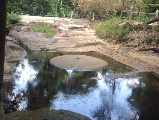 その後、クバール・スピアンへ移動し麓から登りました。途中険しい岩道を登るのでサンダルではなく運動靴がいいと思います。50分くらいかけて彫刻が観える場所に到着。川底の岩にヒンドゥー教の神、リンガとヨニの彫刻がありました。もっと上流から川底に彫刻が彫られているそうですが、危険なため現在は行けないそうです。