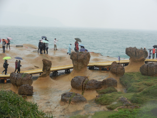 野柳風景区は波の浸食でできた奇岩が多く立ち並び、自然の不思議さや力強さを感じることができました。中国大陸の観光客が多く、列をなして混雑していたため「女王頭」などじっくり見ることができず残念でしたが、再度ゆっくり訪れてみたいと思いました。